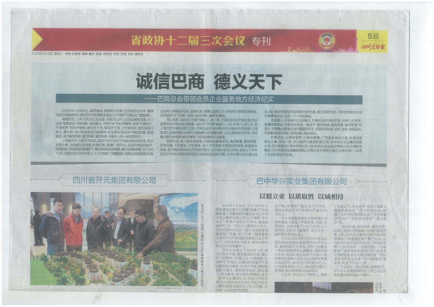 《四川政協報》5月報道開元集團